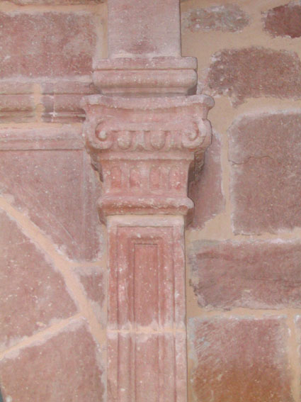en piedra, de gallones. El retablo es barroco con estípites, del siglo XVIII,