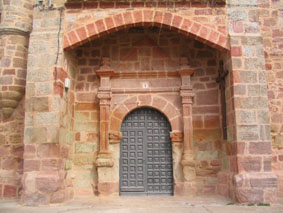 Iglesia en estilo purista renacentista, con arco de medio punto flanqueado por